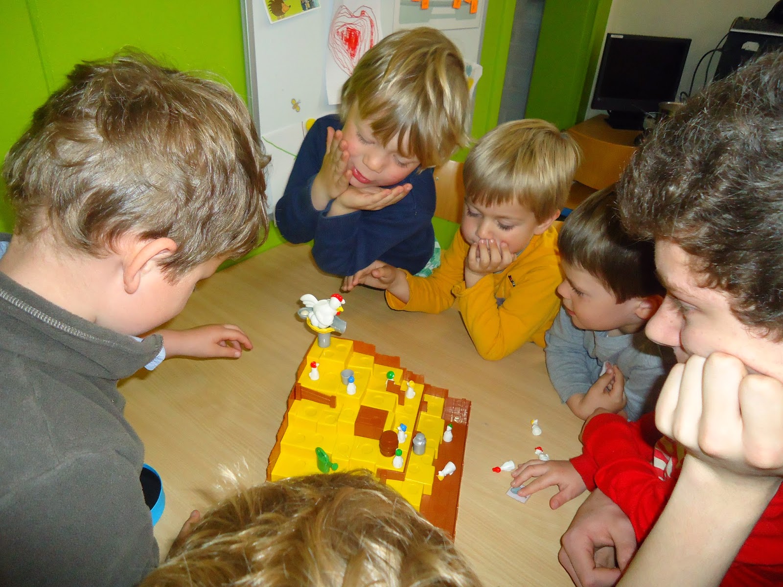We speelden een spel met paaseitjes waarbij we drie kenmerken moesten combineren om het juiste paasei te vinden. Niet zo makkelijk maar wel leuk!